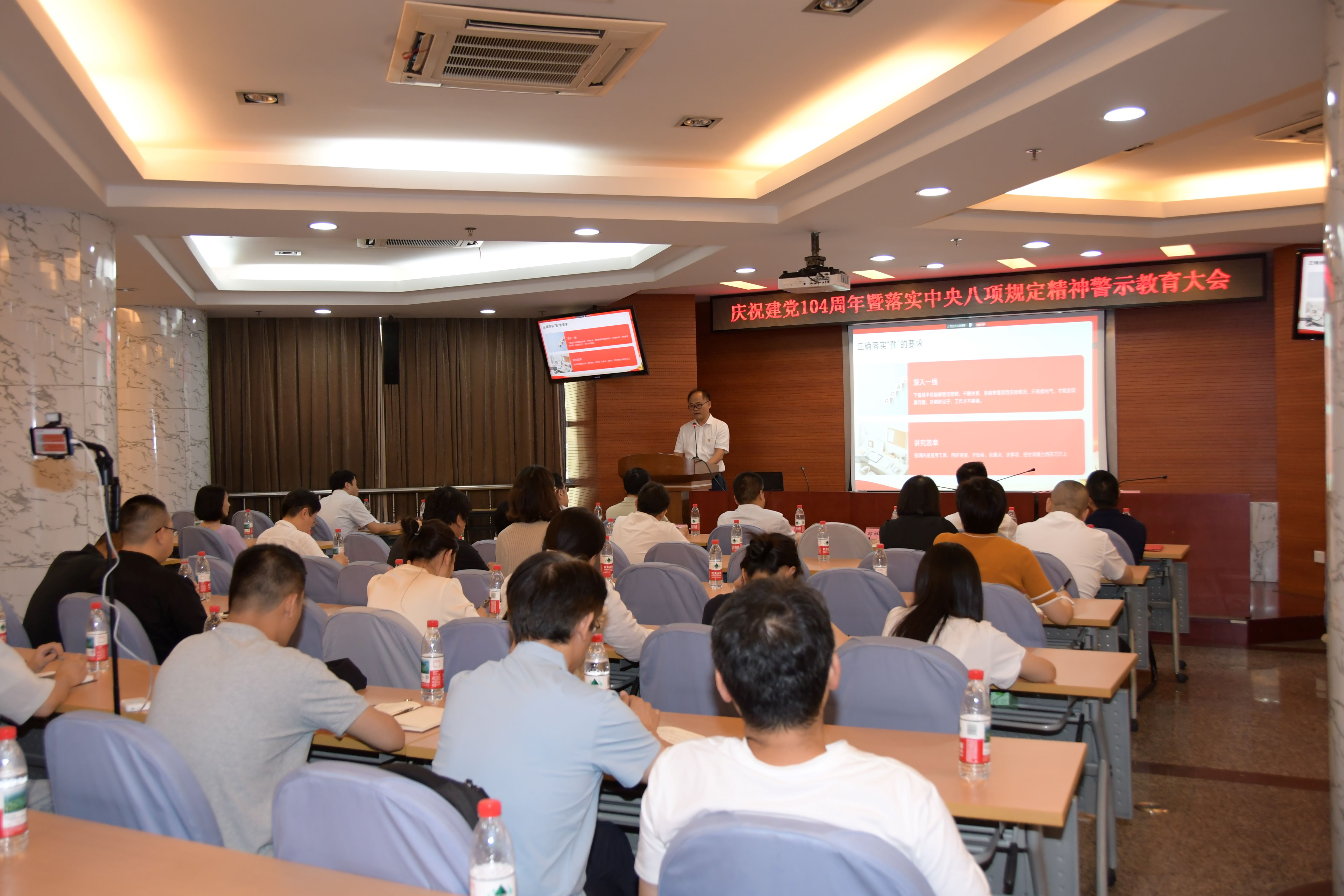 7月4日下午,电信一所(长江通信)党委召开庆祝建党104周年暨落实中央八项规定精神警示教育大会。党委书记、董事长邱祥平以“严守作风明戒惧,奋勇争先抢新机”为题上专题党课,纪委书记姜国围绕“学法律、明纪律、守廉洁”开展案例警示教育。党委副书记雷霆主持会议。
