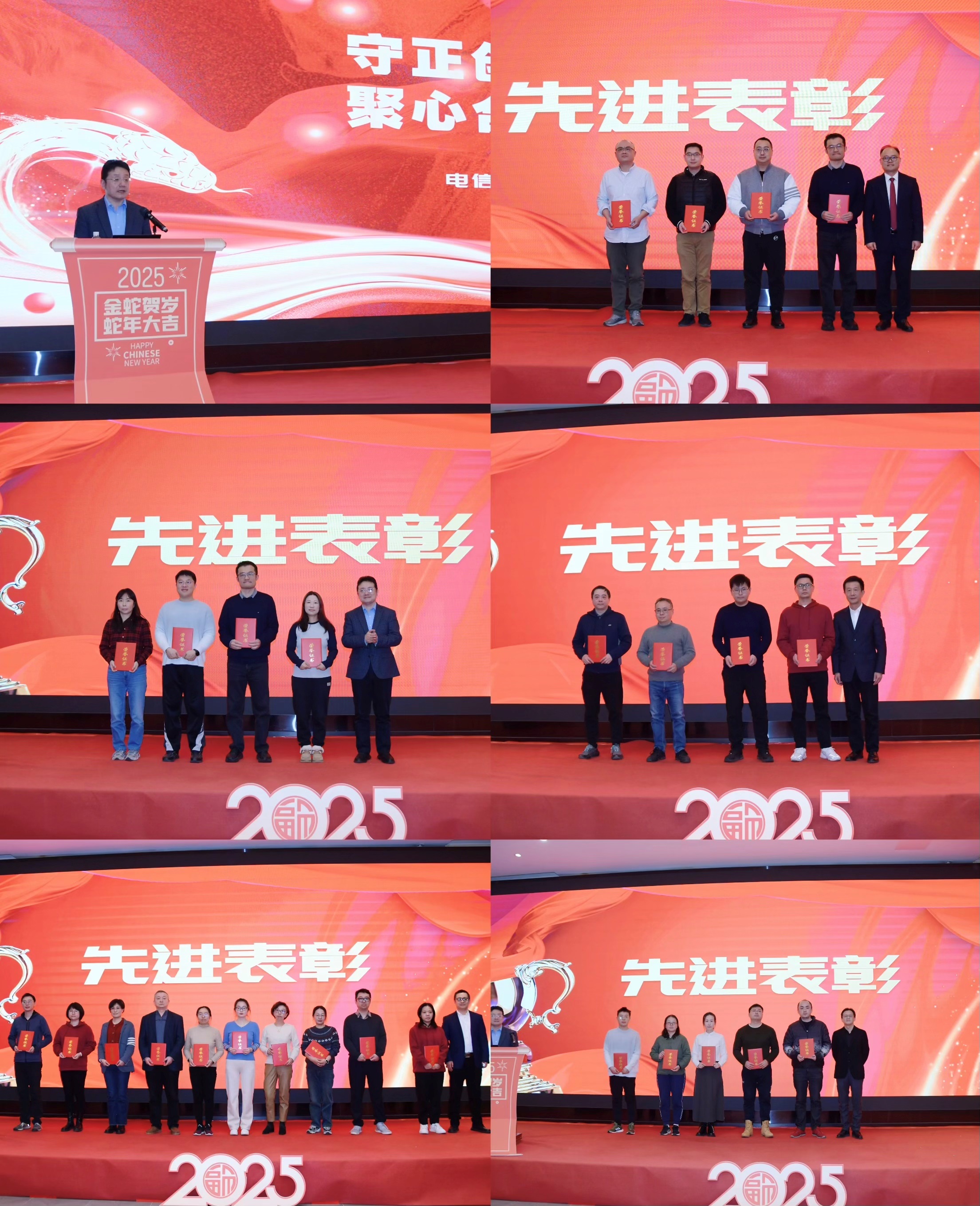 1月21日,电信一所以“守正创新行稳致远 聚心合力共赴新程”为主题,召开2024年度工作总结大会。党委书记、董事长邱祥平做2024年度工作报告,所本部全员、泰峰公司员工代表等近百人参加大会。会上表彰了2024年度所文化激励先进集体及个人,以及所本部“发展潜力奖、优质服务奖和研发创新奖”获奖个人。泰峰公司、卫星通信事业部、专用通信事业部及职能部门获奖代表上台发言。本次大会由所党委副书记雷霆主持。