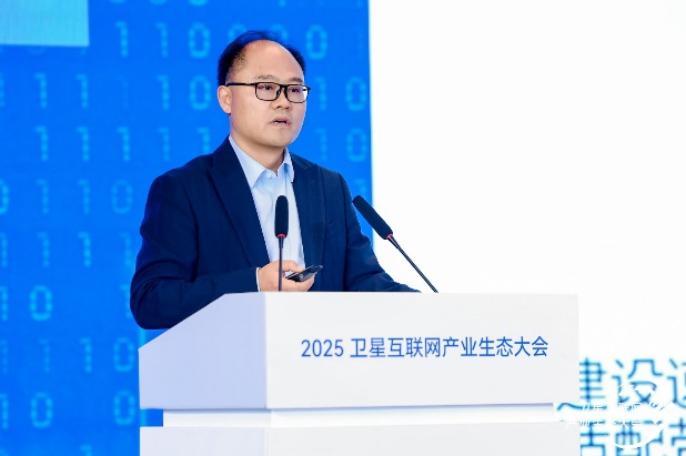 在卫星互联网全链接论坛上,邱祥平发表主旨演讲